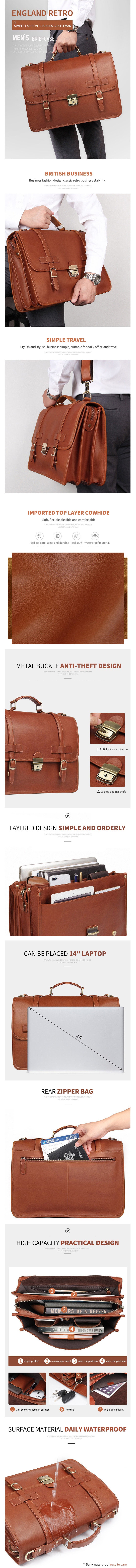 Large Capacity design:The leather briefcase including 1*Front pocket;3*main compartments hold your business and daily needs, plus an organizer with slip pockets, pen sleeves;1*keychain design in the main compartment;1*back pocket holds passport,wallet and other urgent items to be convenient to take in any place.